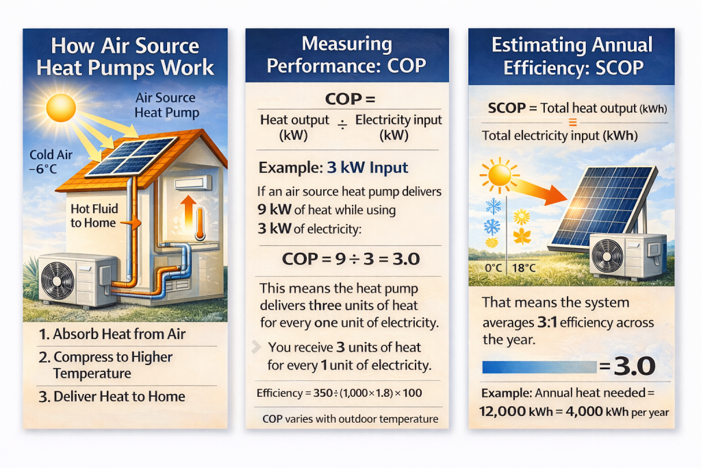Because of this, air source heat pumps offer an efficient way to heat homes and cut energy use.